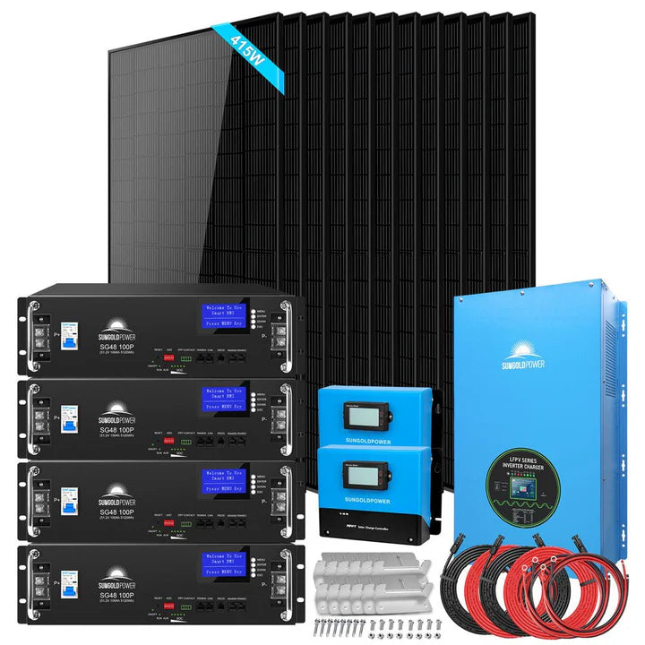 Off-Grid Solar Kit 12000W 48VDC 120V/240V LifePo4 20.48KWH Lithium Battery 12 X 415 Watts Solar Panels SGR-12K20E