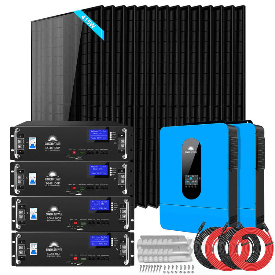 Off-Grid Solar Kit 13000W 48VDC 120V/240V LifePo4 20.48KWH Lithium Battery 14 X 415 Watts Solar Panels SGR-13KM