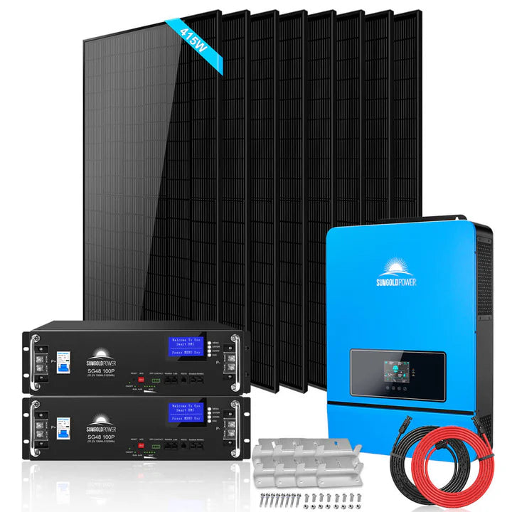 Off-Grid Solar Kit 8000W 48VDC 120V/240V LifePo4 10.24KWH Lithium Battery 8 X 415 Watts Solar Panels SGR-8K10E