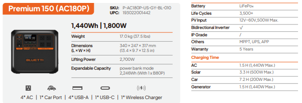 Bluetti Solar Portable Power Station (AC180P)